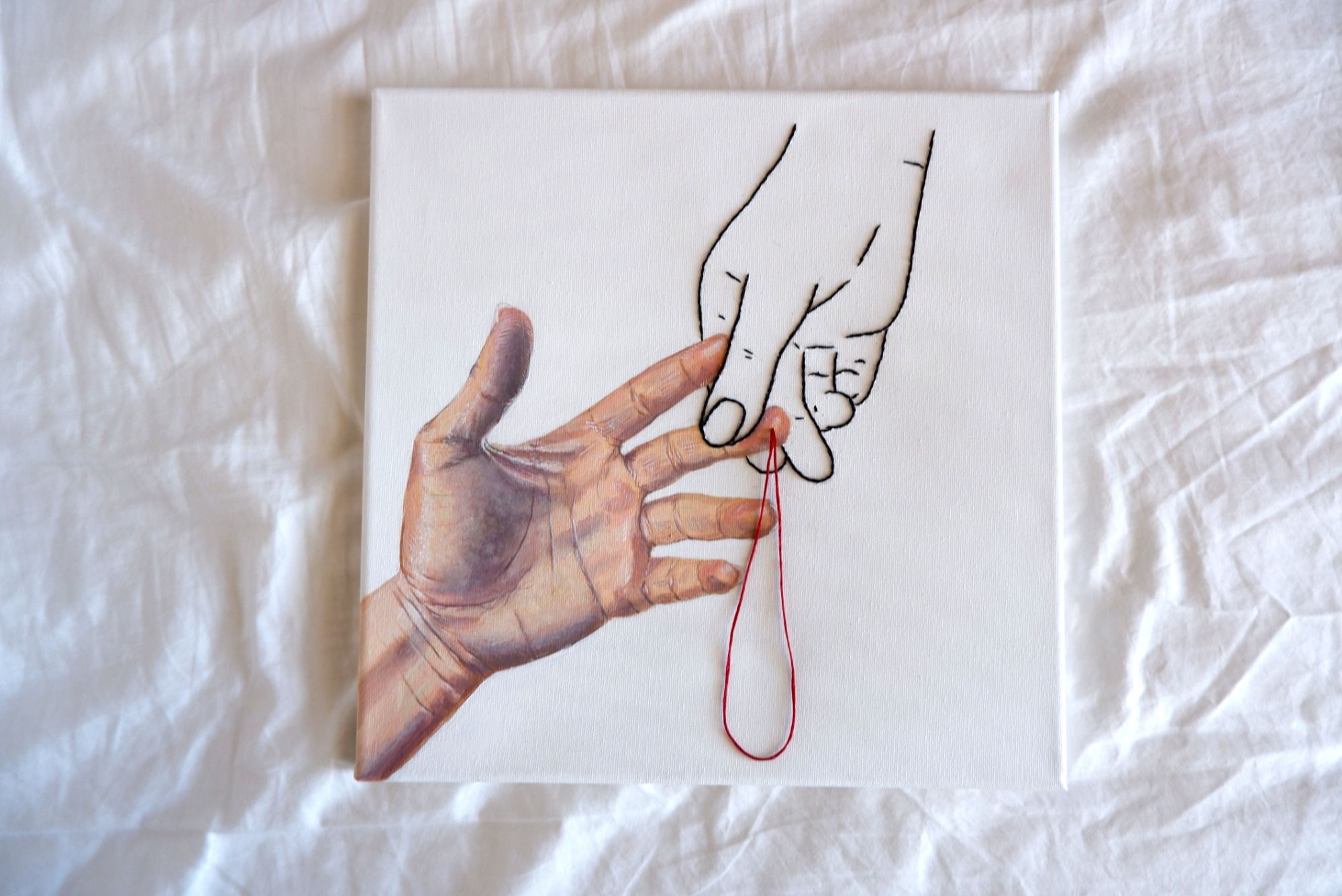 These works are a deeply meaningful exploration into finding beauty in disability and advocating for access to insulin. By painting disability, I encourage the viewer to look deeply at the attachments and scars and all that societal norms tell you to turn away from. This art is an invitation to stare without judgement so that you might walk away with a better understanding and appreciation of what Diabetics endure. All works below are acrylic on canvas. Notably, a few of the below pieces were created with Allison Wheeler, a fiber artist and disability advocate, who embroidered pieces after I painted them and, with the help of Mutual Aid Diabetes (MAD), they were raffled off to raise money for diabetics in need. We ended up raising $1,453 with a total of 270 tickets bought...or in other words enough for just over the amount of insulin the average diabetic to use in a month. Alternate Text is here