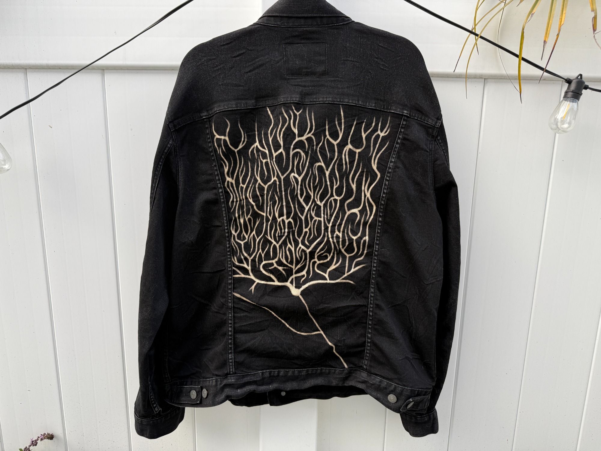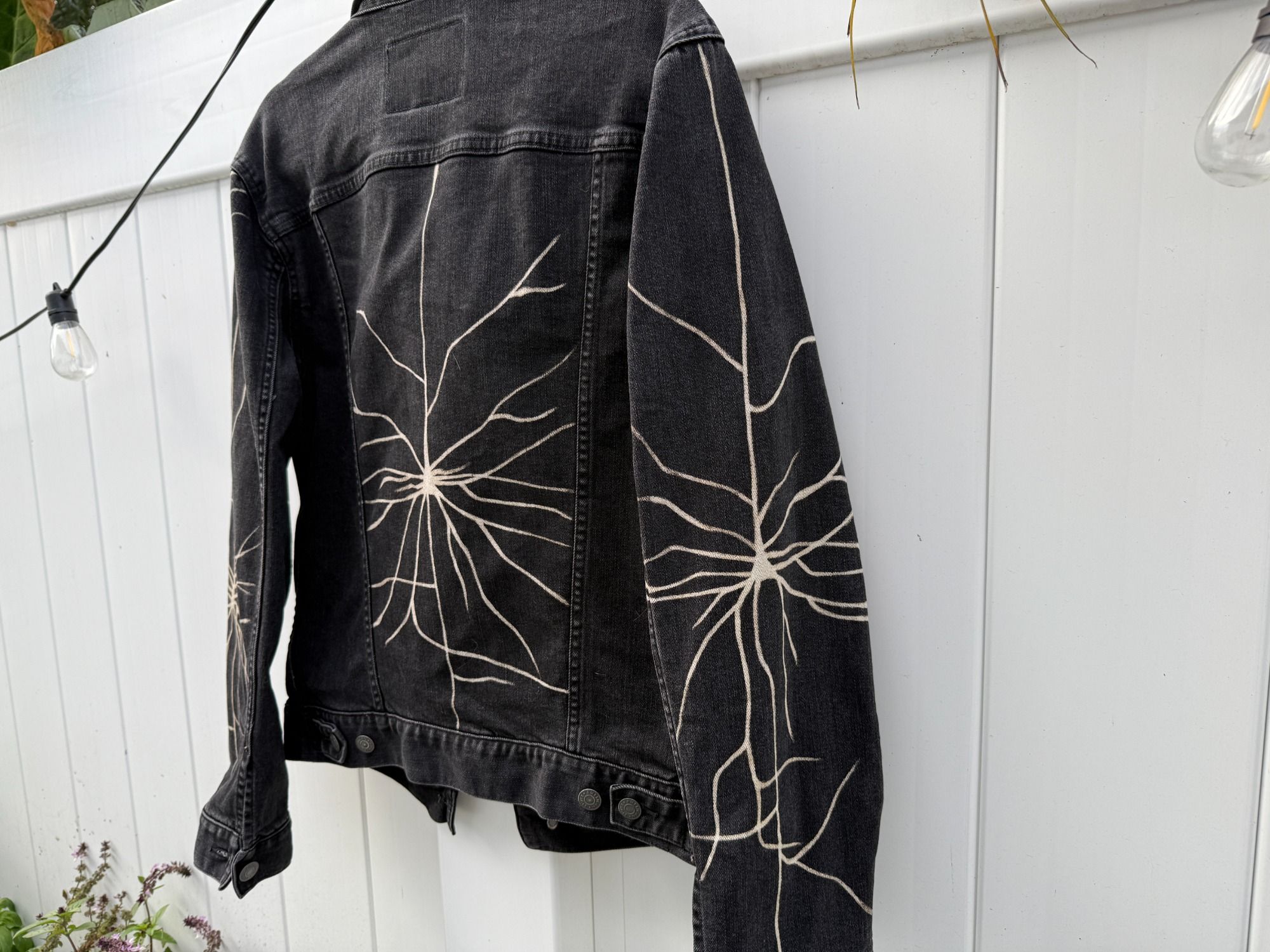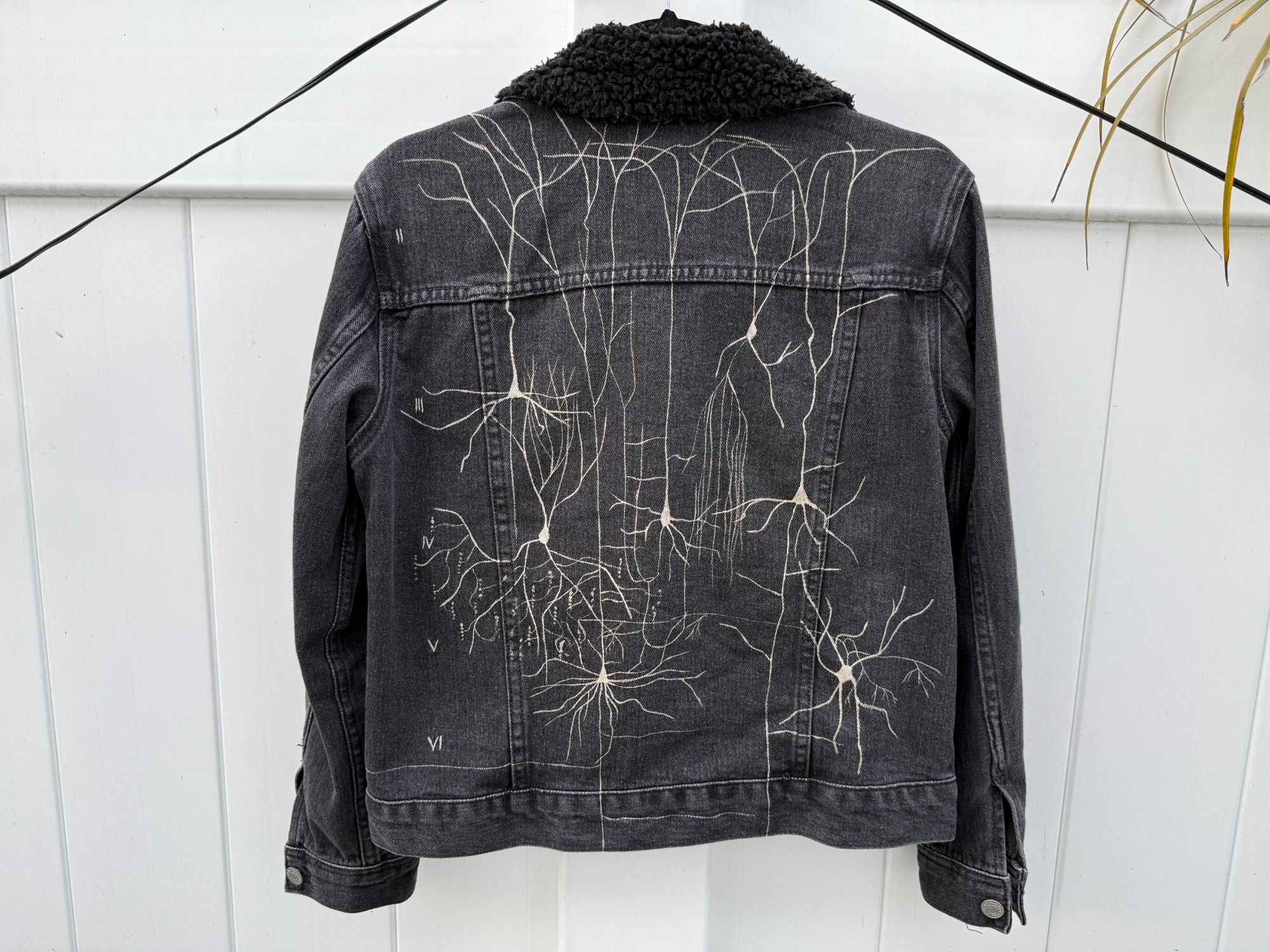 Black denim items with hand painted neurons and more all created by Morgan!